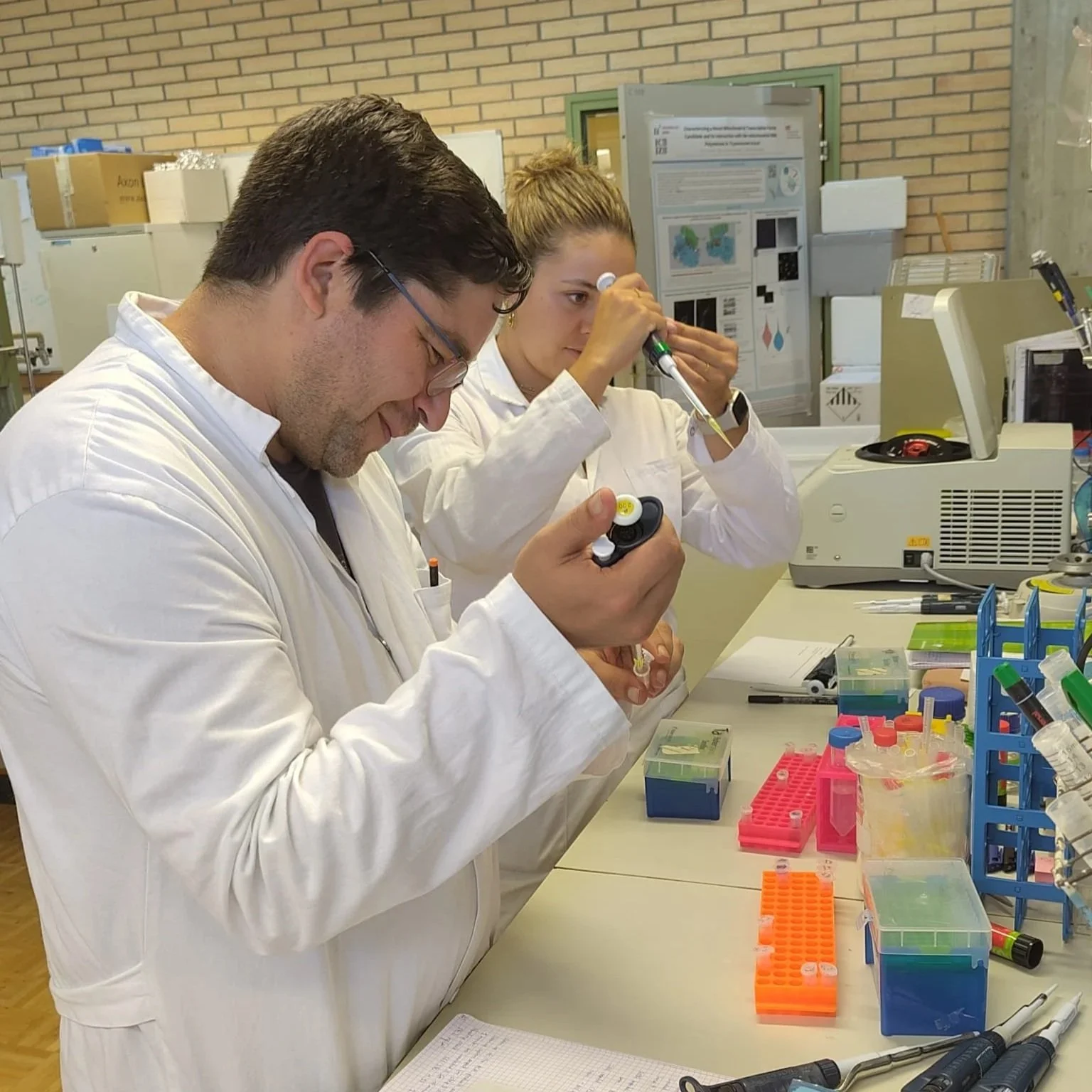 Two Bachelor students, Gregory Montiel and Fabienne Nippel, joined our group for three weeks to contribute to the project on characterizing candidate proteins potentially involved in kDNA replication in Trypanosoma brucei. During their stay, they became familiar with the background of the system and actively participated in experimental work, including molecular cloning, immunofluorescence assays, as well as SDS and Blue Native PAGE. Their commitment and collaborative spirit were greatly appreciated, and their contributions laid valuable groundwork for the next stages of the project.